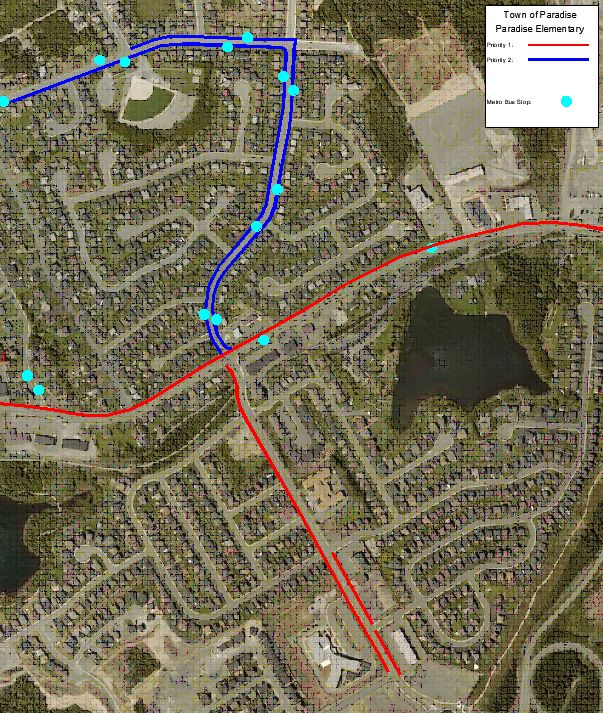 Sidewalk clearing begins once all roads have been cleared. School zones, for the purpose of this policy, are the designated areas surrounding schools in the Town of Paradise, as illustrated below.